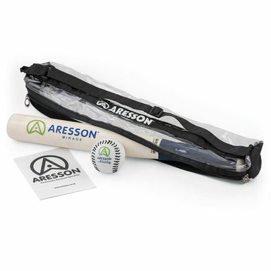 Aresson Mirage Bat & Ball Pack - Clear plastic carry case contains Mirage Rounders Bat and Bullet Rounders Ball with a copy of the abbreviated ...