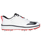 This Arch Fit Cricket design features a synthetic and mesh upper with a lace-up front, lightweight ULTRA GO cushioning, Skechers Move Foam and a Goodyear Performance Outsole with removable metal fielder spikes.