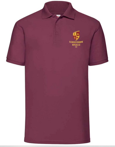 Maroon Poly/Cotton Pique Polo Shirt with Gloucester Gipsies Club Logo Embroidered on the LHB Ribbed collar and cuffs. Taped neck. Three self colou...