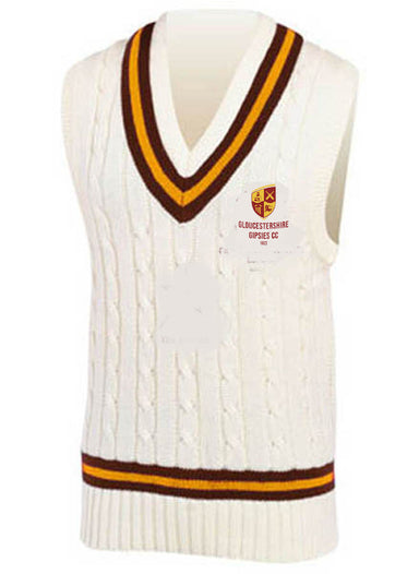 Gloucester Gipsies Cricket Slipover with embroidered club logo Classic heavy cable knit Cricket sleeveless slipover in Maroon / Gold / Maroon 100% ...