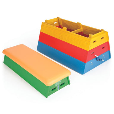 This colourful junior vault box comprises 4 sections in different colours, with a well padded vinyl top and a wheeling device for easy manoeuvrab...