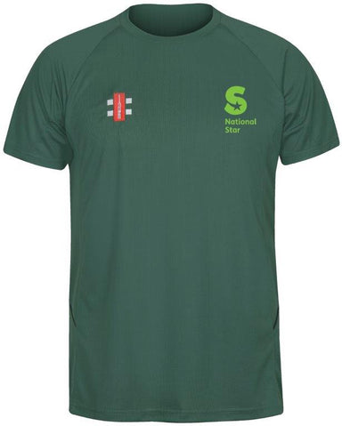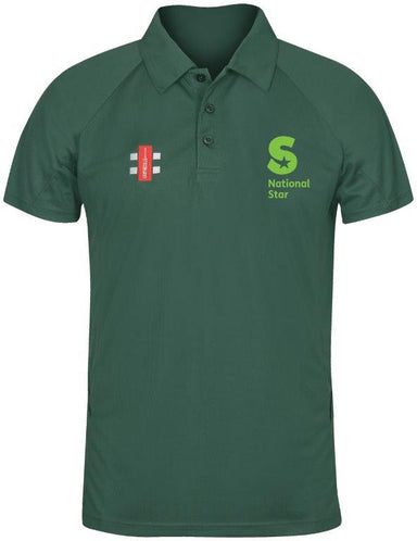 National Star College CC Matrix Short Sleeve Cricket Shirt with Green Trim and embroidered Club Logo. The Ultra-cool soft feel ensures rapid moistu...