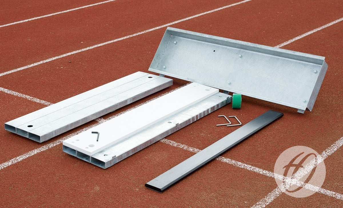 Rectangular blanking board, for use in long jump and triple jump foundations.