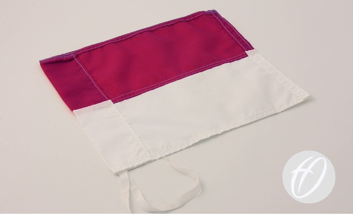 Maroon & white horizontal flag for use with our 22mm and 30mm flexible PVC corner poles.