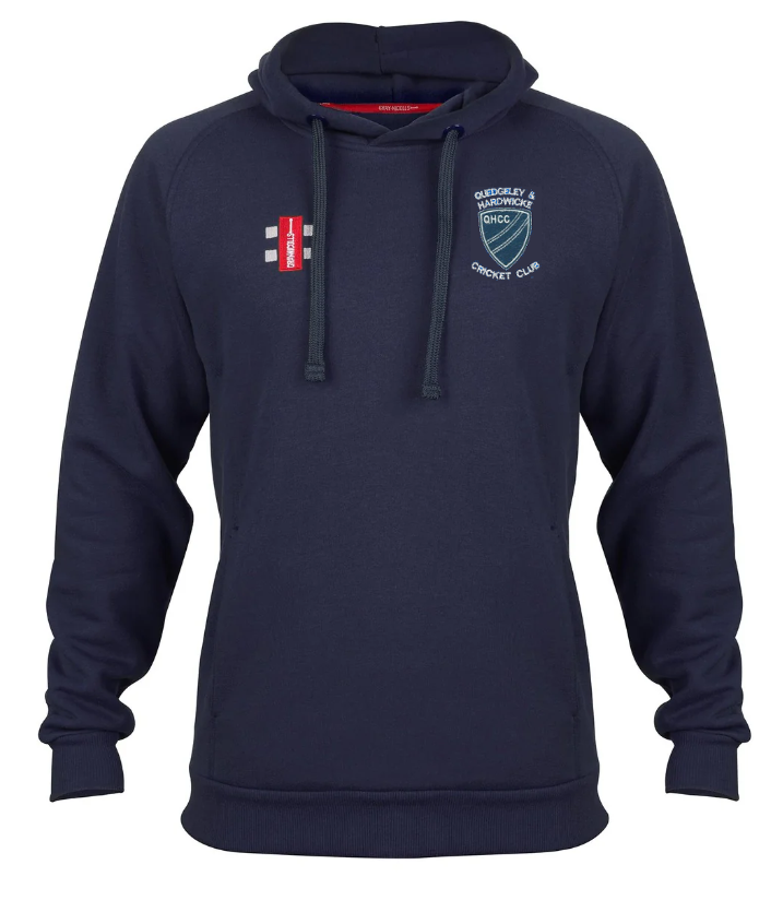 Quedgeley & Hardwicke CC Velocity Hoodie with the club logo on the LHB