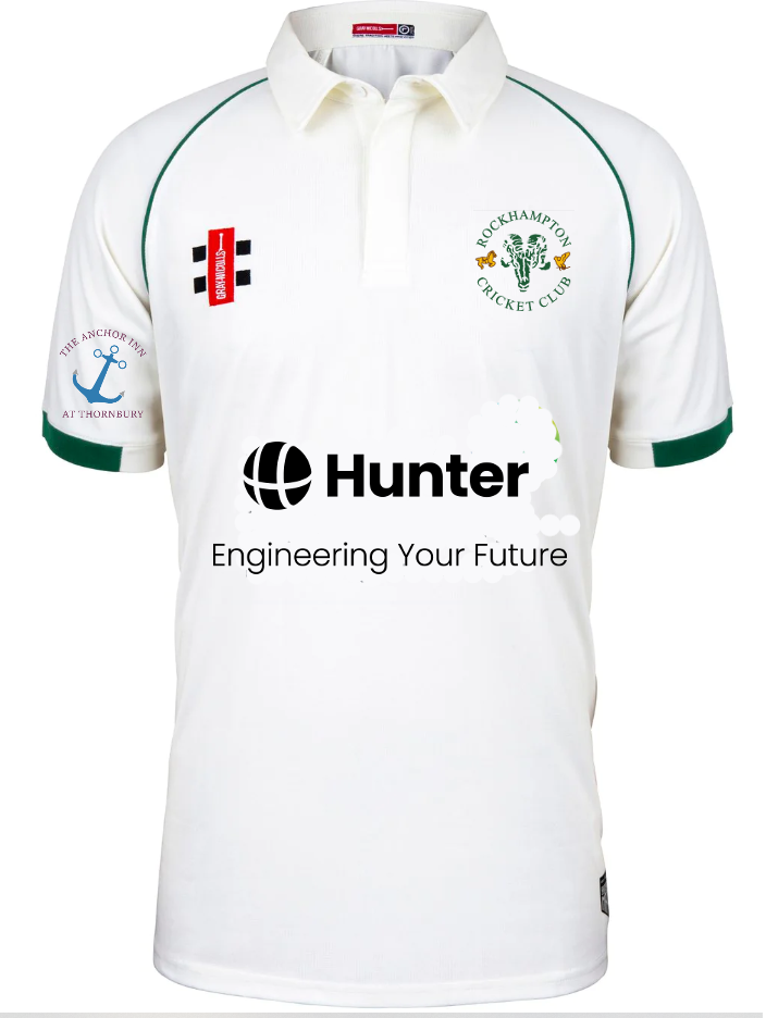 Rockhampton CC Matrix V2 Playing Shirt - Club logo on LHB and 3 Sponsors logos